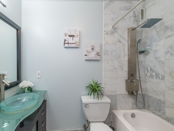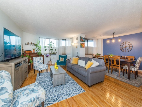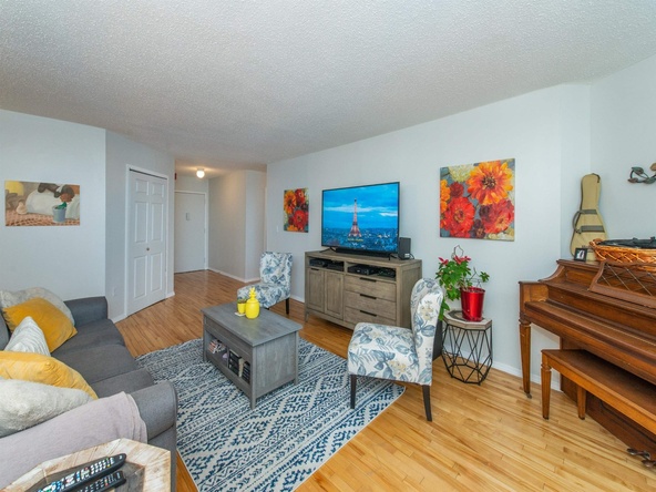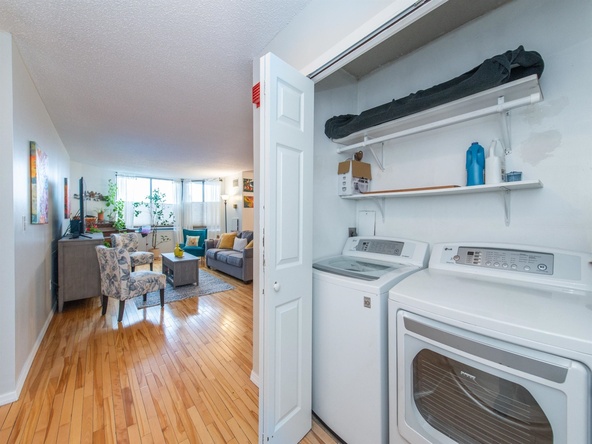 This home is currently off market. Lovely light-filled 2-bed, 2-bath condo in desirable, convenient, and pet-friendly Harmon Cove Tower. Spacious and open concept unit boasts one-floor living with generous sized rooms, hardwood floors, updated designer eat-in kitchen complete with butcher block island, wine fridge, stainless steel appliances, pantry, and tons of storage. Primary bedroom suite has frosted French doors, oversized walk-in closet with built-ins, a linen closet, and attractive large master bath with double designer sinks and marble tile floor. Work from home in spacious 2nd bedroom. Laundry in the unit: so convenient!