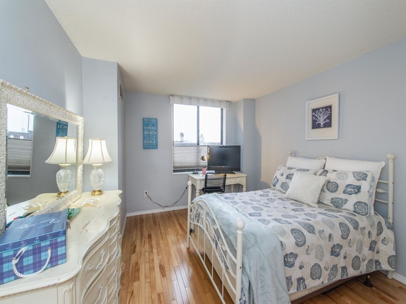 This home is truly bright and cheerful. Bay windows in living room and dining room overlook swimming pool. One deeded garage parking space is included. Additional parking is available. Extensive amenities include elevator, 24-hour concierge and security, fitness room, game room, beautiful outdoor pool, sauna, basketball/tennis courts, and play area. Commute to NYC has never been easier with frequent buses to Port Authority and Secaucus Junction (train into NYC) at the gate of the complex. Close to shopping, outlets, mall, restaurants and more. Enjoy comfort and ease at Harmon Cove Tower! HOA is $929.53/mo. Special assessment $189.71 thru 2025. Newest assessment already paid in full.
