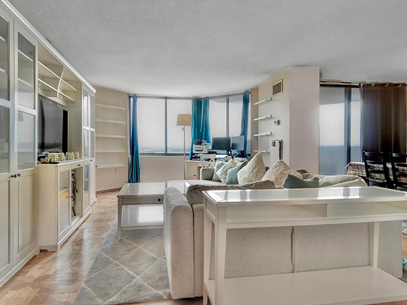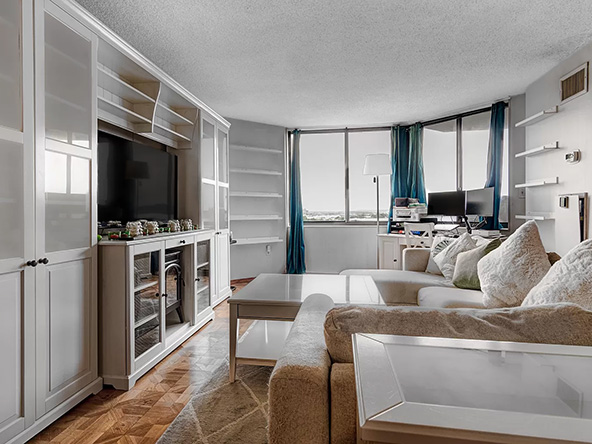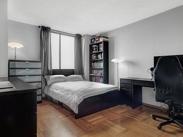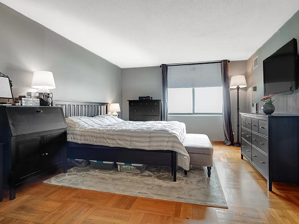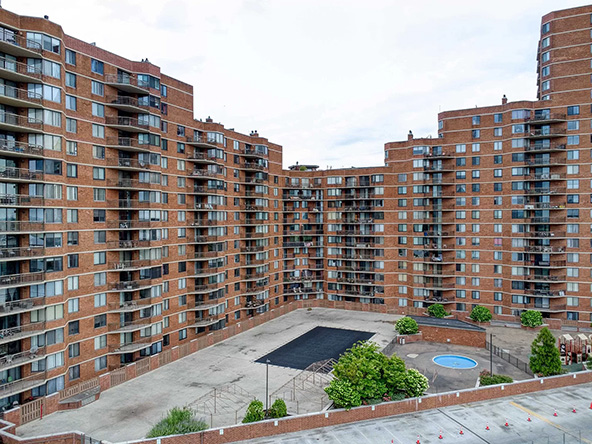 Harmon Cove Towers provides high-end amenities such as a 24-hour doorman, indoor parking, security, a pool, fitness center, sauna, and more. The complex also offers basketball and tennis courts, playrooms, a game room, and a community room.