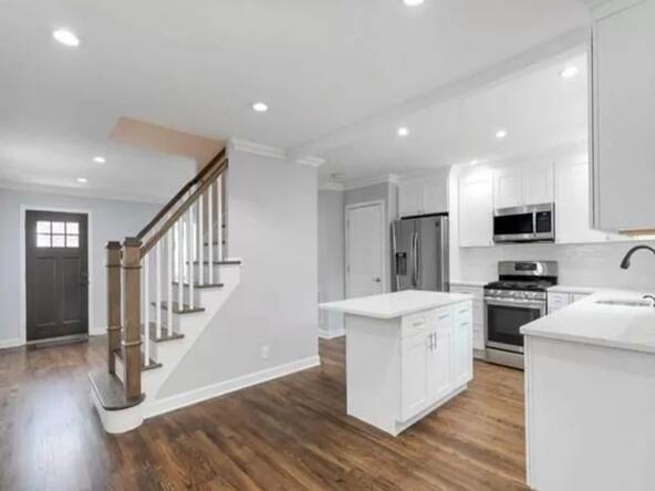 The extensive renovations to the Tudor-style design includes new entrance door, all refinished hardwood floors, all new sheetrock, fresh paint, plumbing and electric. New kitchen with quartz counters and stainless steel appliances, brand-new bathrooms, new furnace, tankless hot water heater, central air conditioning. No expenses were spared.