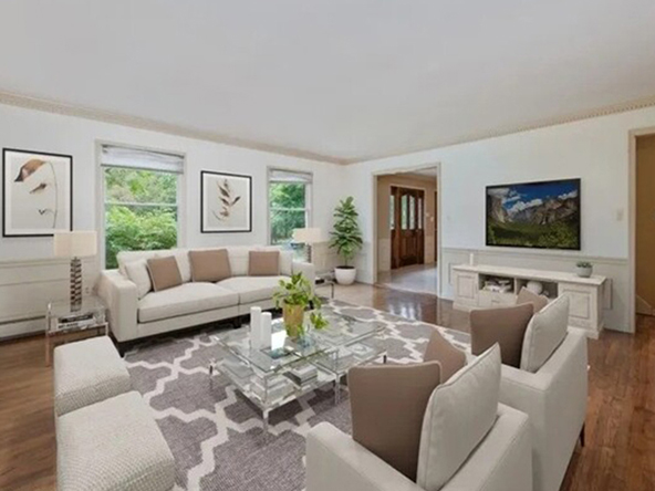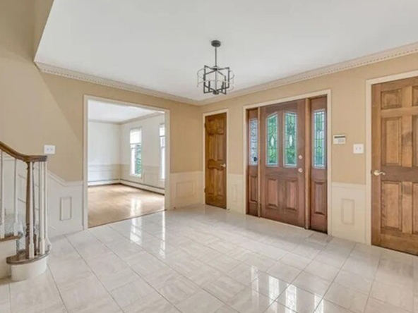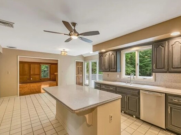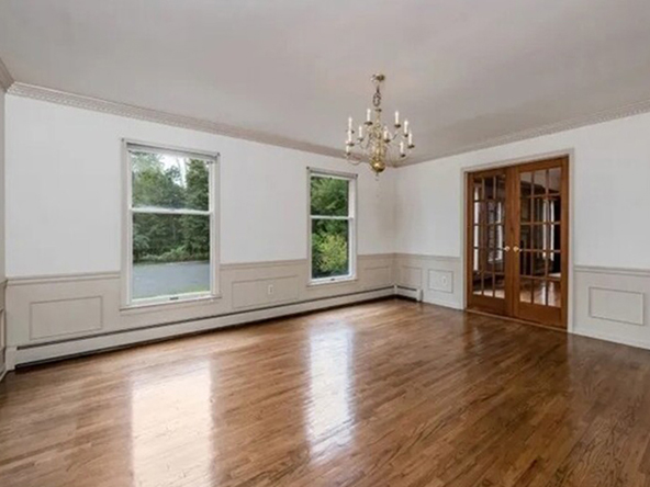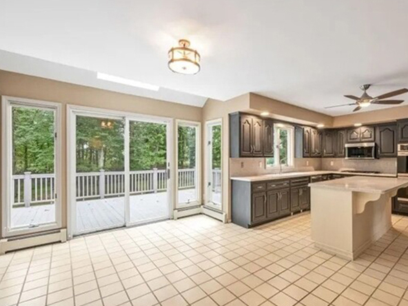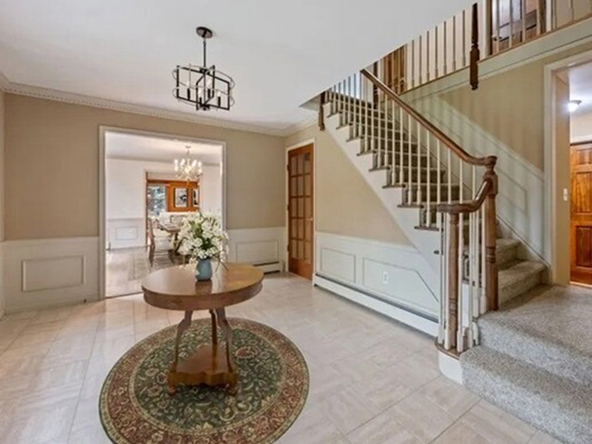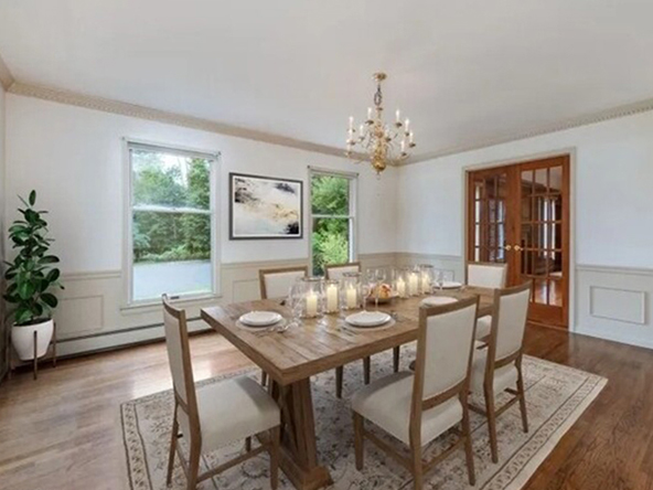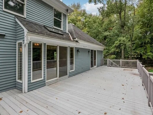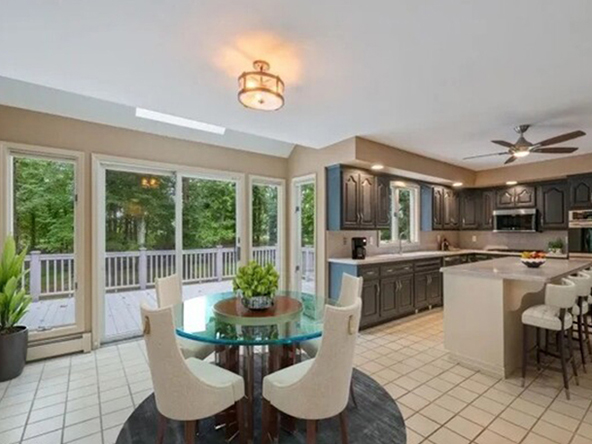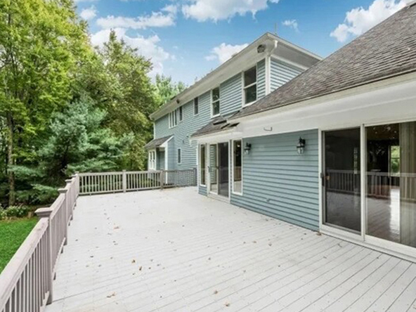 Tucked away at the end of a serene cul-de-sac in picturesque Franklin Lakes, this charming five-bedroom, three-bathroom colonial home offers a perfect blend of tranquility and convenience. Set on 1.3 acres, the property provides easy access to local amenities while boasting over four thousand two hundred square feet of versatile living space. The bright and airy kitchen, complete with a breakfast nook and glass doors, opens onto a spacious deck crafted from durable, low-maintenance materials, making it an ideal spot for entertaining family and friends. Just off the kitchen, the great room is characterized by warm wood-paneled walls that create an inviting ambiance.